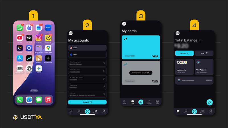 Apenas llegan los USDT, Offramp los convierte en saldo gastable en una tarjeta Visa virtual.